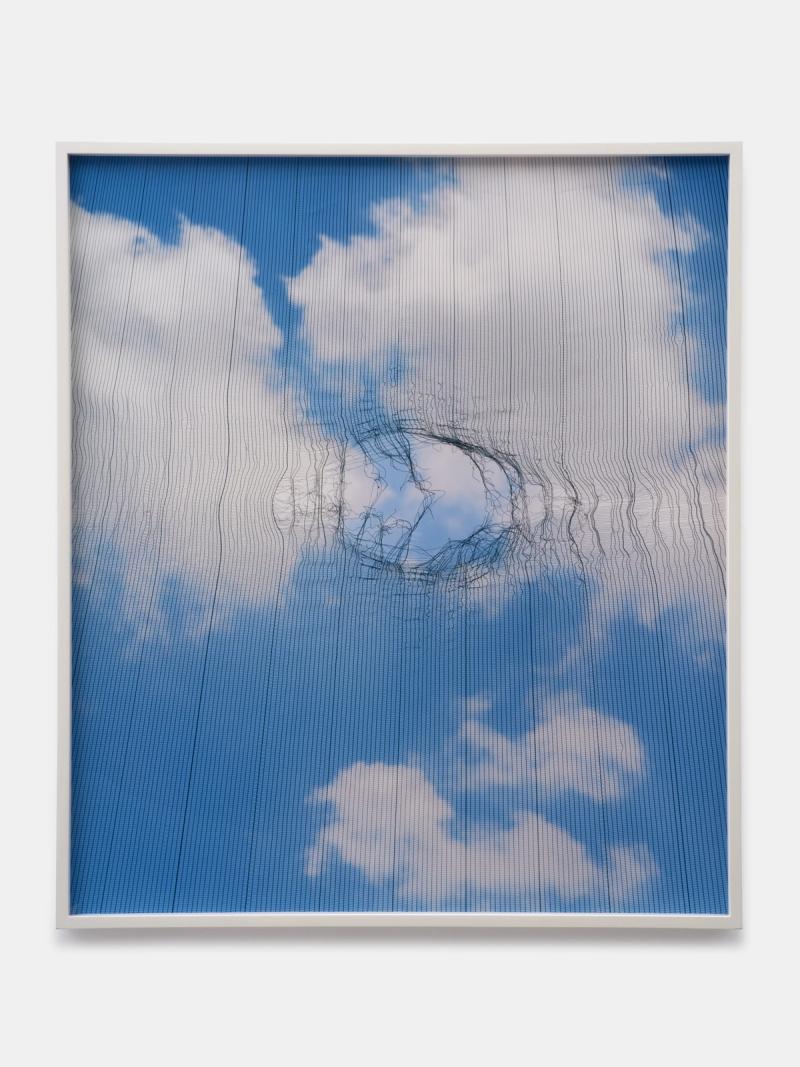Since the Neolithic era, peoples across cultures have observed the summer solstice with ceremony, performing transitory rituals or erecting monuments in its honor. In this temporary monument, twelve artworks line the gallery’s perimeter as if in procession, or like numerals marking the timelines of the day, each one a fleeting undulation in the atmosphere. Keeping time is the ticking of the 16mm film projector casting Paul Pfeiffer’s Sunset Flash on a loop, reproducing its shared moment of celestial serenity, as onlookers enjoy day’s perpetual surrender to nightfall.