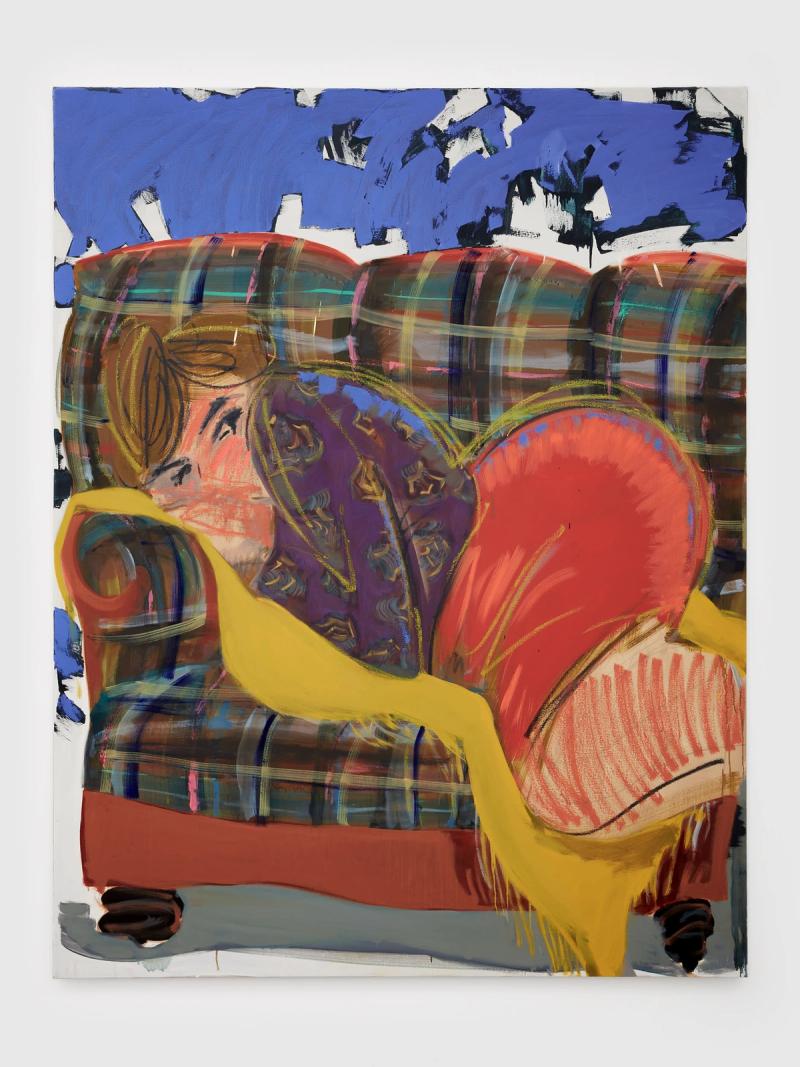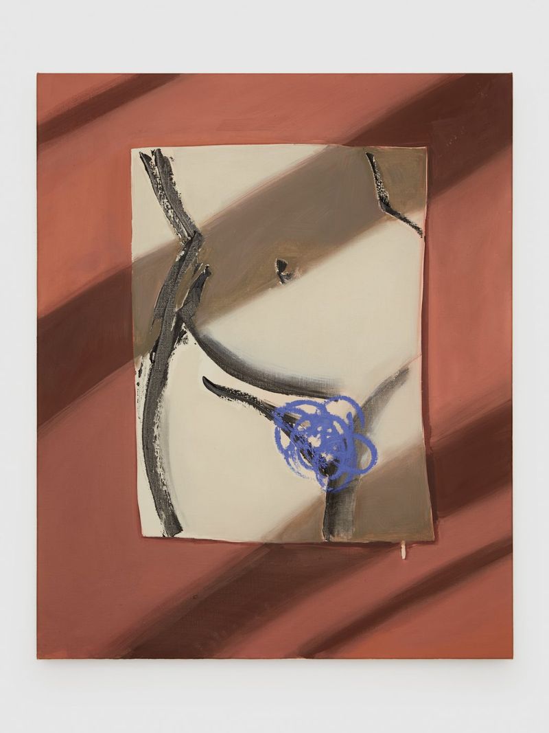 Both a mantra and a quip, the title of Ella Kruglyanskaya’s first exhibition with Bortolami Gallery, Keep Walking, arms her trademark protagonists as they confront their audience with unabashed femininity. Drawing attention to the heightened plots of female sexuality and its mundanity alike, Kruglyanskaya’s painted bodies reenact and subvert the womanhood canonized in traditions of western painting and in visual culture, infusing gendered tropes with her brash and comedic approach to representation.