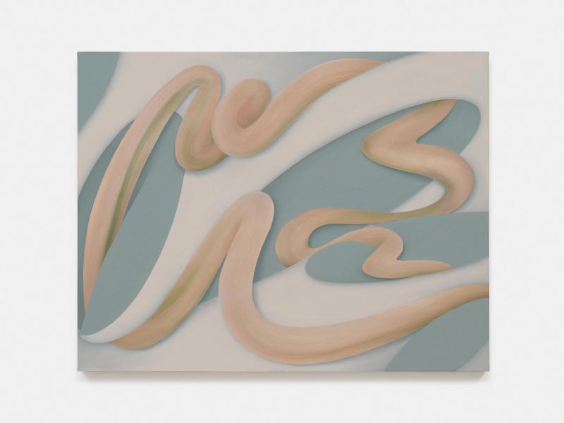 Vance works within a distinct set of conditions, beginning each painting with a limited palette of between three and five colors. An intuitive rather than premeditated process guides her work, as shapes with no discernible beginning or end progress through gradual, kinetic evolutions in the studio. Her compositions are anchored by stark, monochrome forms which bend and intersect with one another, their overlaps casting subtle shadows which complicate the demarcation between positive and negative space. Woven between them are long, expressive streaks of color; mixtures of adjacent hues which have been scraped into a textural if palimpsestic blur. Vance has compared the compositional resolution of her paintings to “hitting a pause button.” The work exists in a state of transformation where movement is suspended on the canvas, suggesting an unseen before and after.