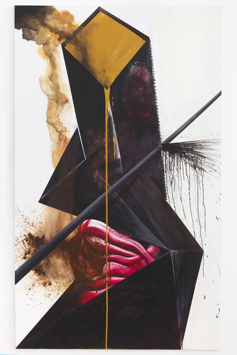 Janas' paintings evoke an imagined world that spans the realms of nightmare and dream, interior and exterior, carnal and cerebral. Citing the Minotaur - one of the earliest instances of bestiality - Janas darkly and ironically refers to the vulnerability of the body and his contradictory feelings of pride and disgust about sexuality and masculinity.