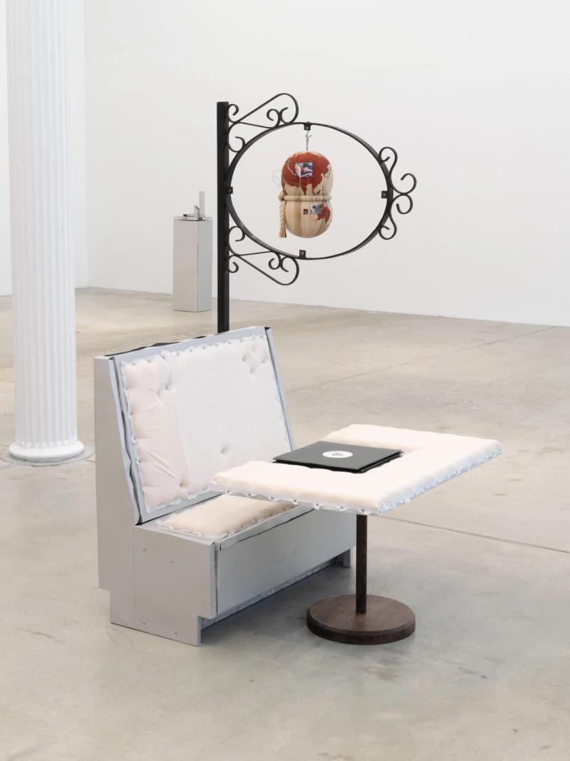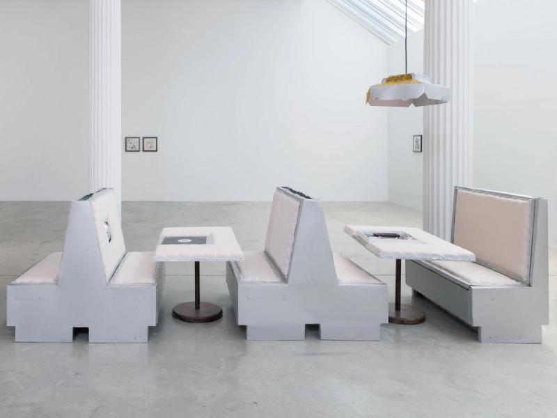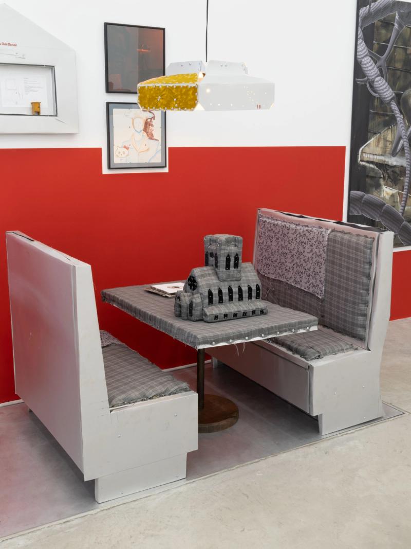 For the exhibition, Schumacher has replicated the interior of China Chalet, a Chinese banquet hall turned after-hours club located just around the corner from the New York Stock Exchange. China Chalet became a go-to destination in the late 2000s, attracting a socially diverse clientele seeking an alternative to the stereotypical NYC club scene. It’s still popular today as a venue for surprise DJ sets from pop stars, incognito celebrity sightings, and a meet-up for artists.