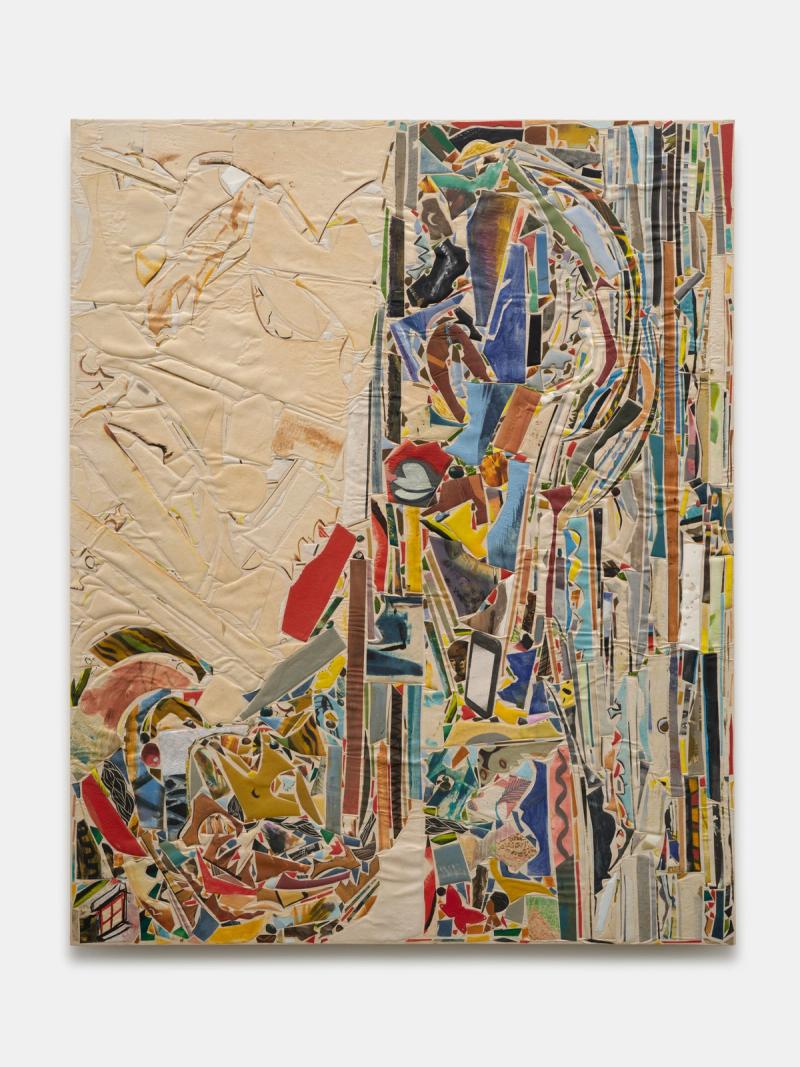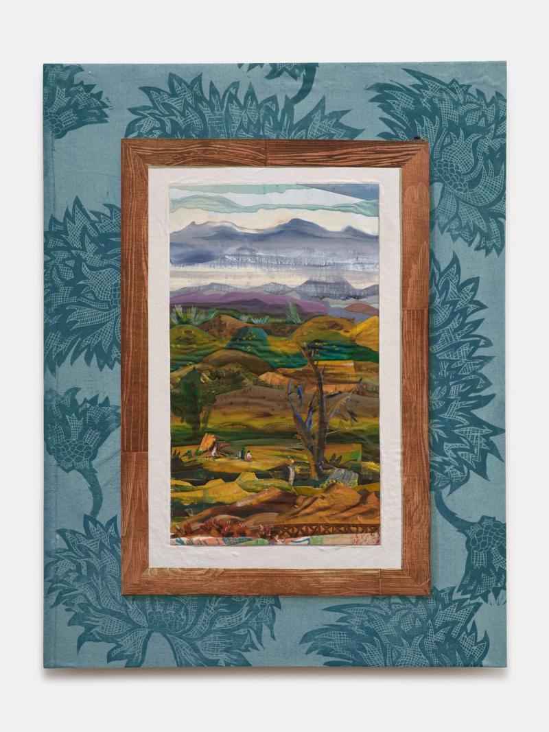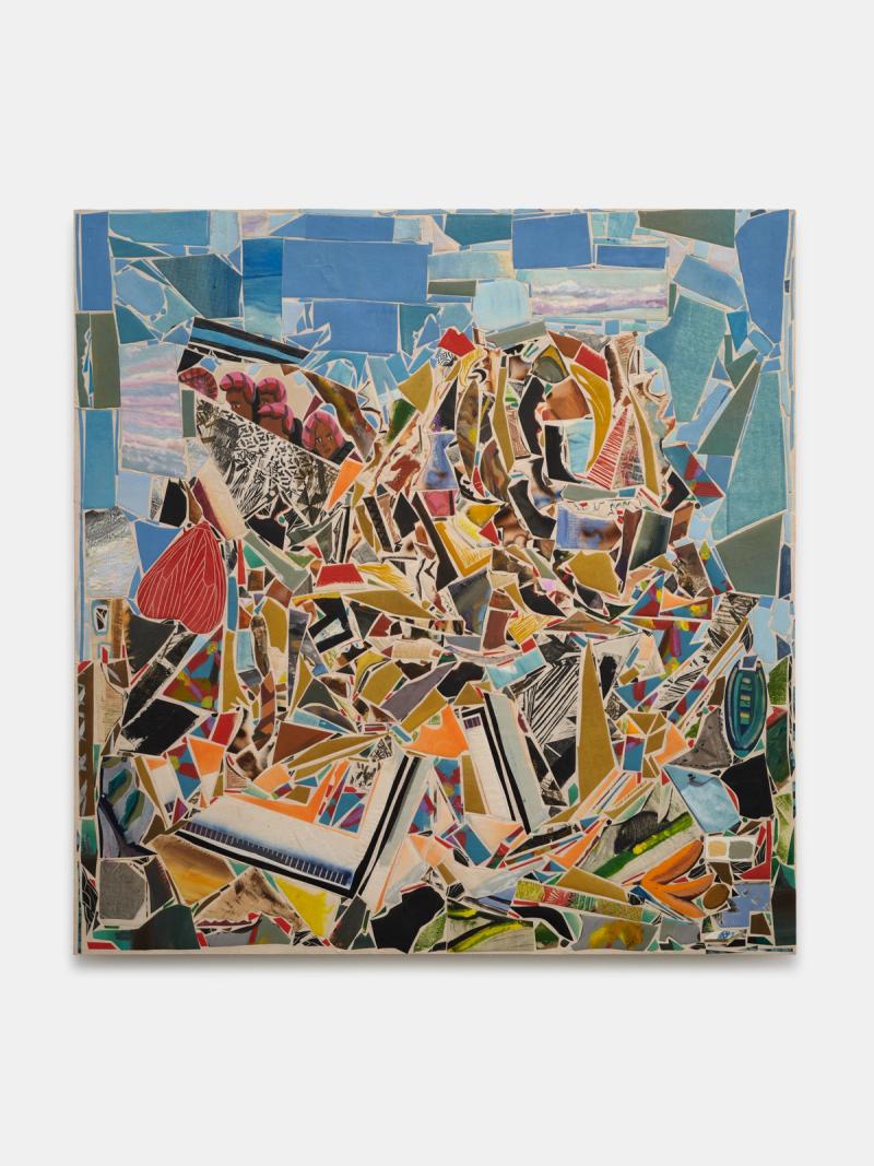 Paula Wilson is a multimedia artist known for creating works that use collage as a unifying approach, in both material and content. Incorporating print, textile, painting, and video, Wilson moves across scales, creating both monumental free-formed figurative pieces, reaching up to 30 feet high, and intimately-sized mosaiced assemblages. Drawing deeply from her own biography, including her 2007 relocation from Brooklyn to Carrizozo, New Mexico, a town of less than 1,000 residents, her holistic practice in the high-desert plains extends beyond traditional artworks. It encompasses functional objects such as her own clothing which she prints and sews, as well as rugs made from painted and printed fabric affixed to wood slats.