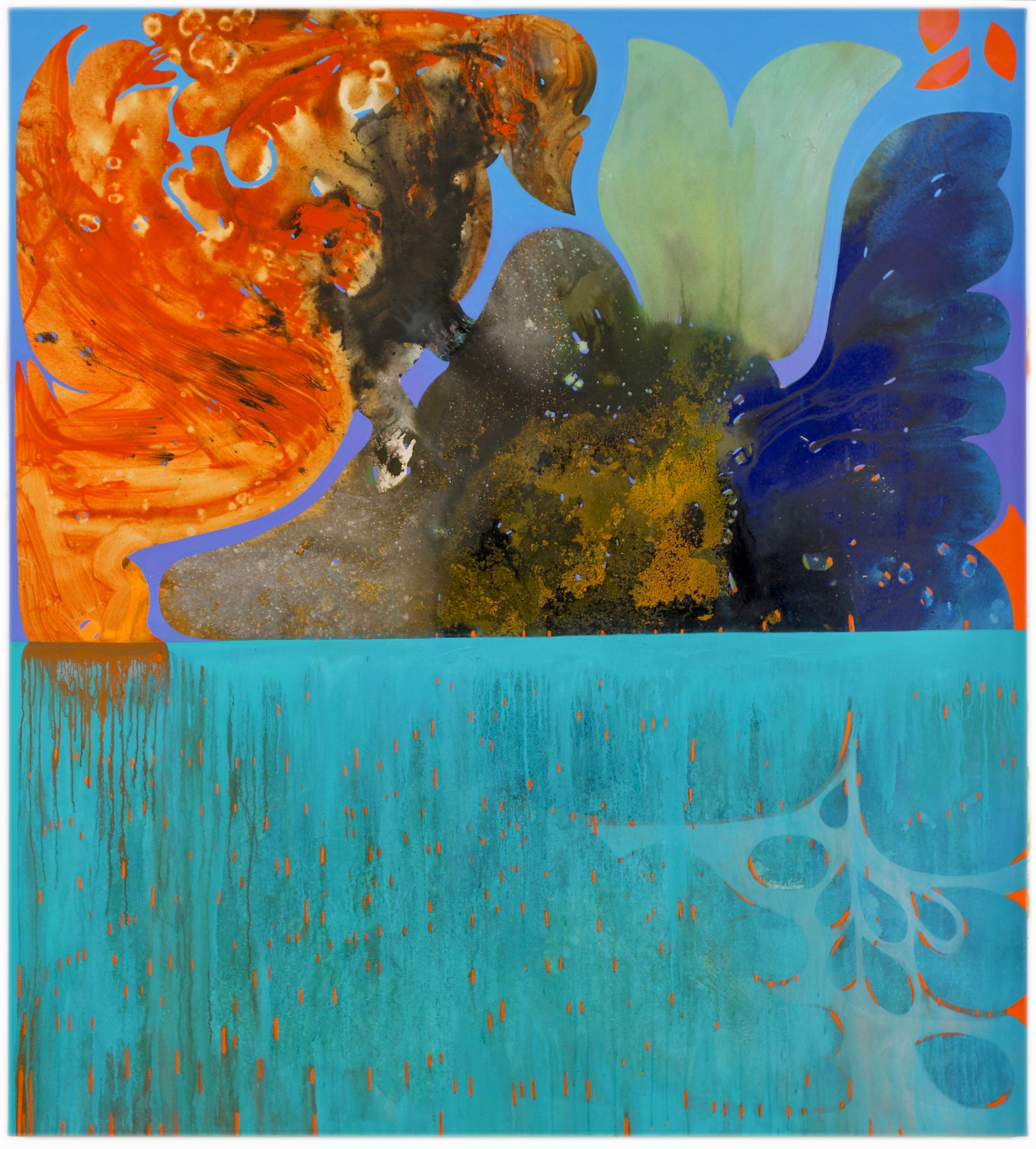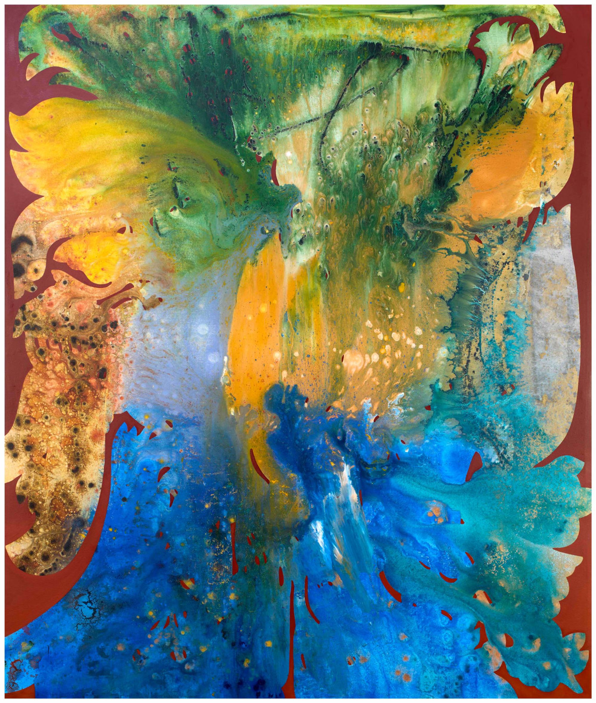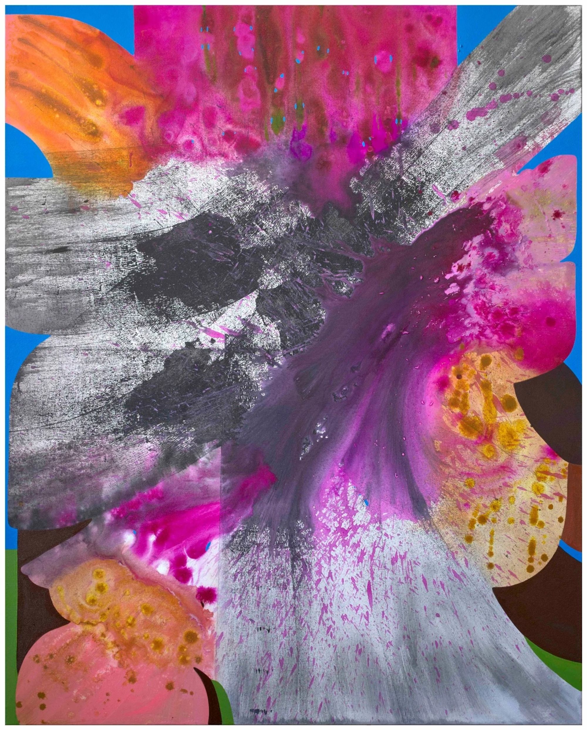 Vian Sora (b. 1976 in Baghdad, Iraq, lives and works in Louisville, Kentucky, USA) is best known for vivid, improvisational abstractions which reflect on themes of creation and regeneration. Her compositions balance disorder with control, evoking the terrain of an aerial landscape or the bloom of flora. Working from above with her canvases laid flat, Sora dissolves raw pigments into rich, aqueous color fields. By applying dozens of layers of paint, Sora achieves a tremendous range of surfaces, from dense, crystalline textures to airy, atmospheric passages. Her expressionistic grounds are overlaid with a series of crisp, monochrome shapes, rendered freehand by the artist. They resemble elements of Arabic calligraphy and cuneiform which have been fragmented into the artist's own formal, non-representational language.