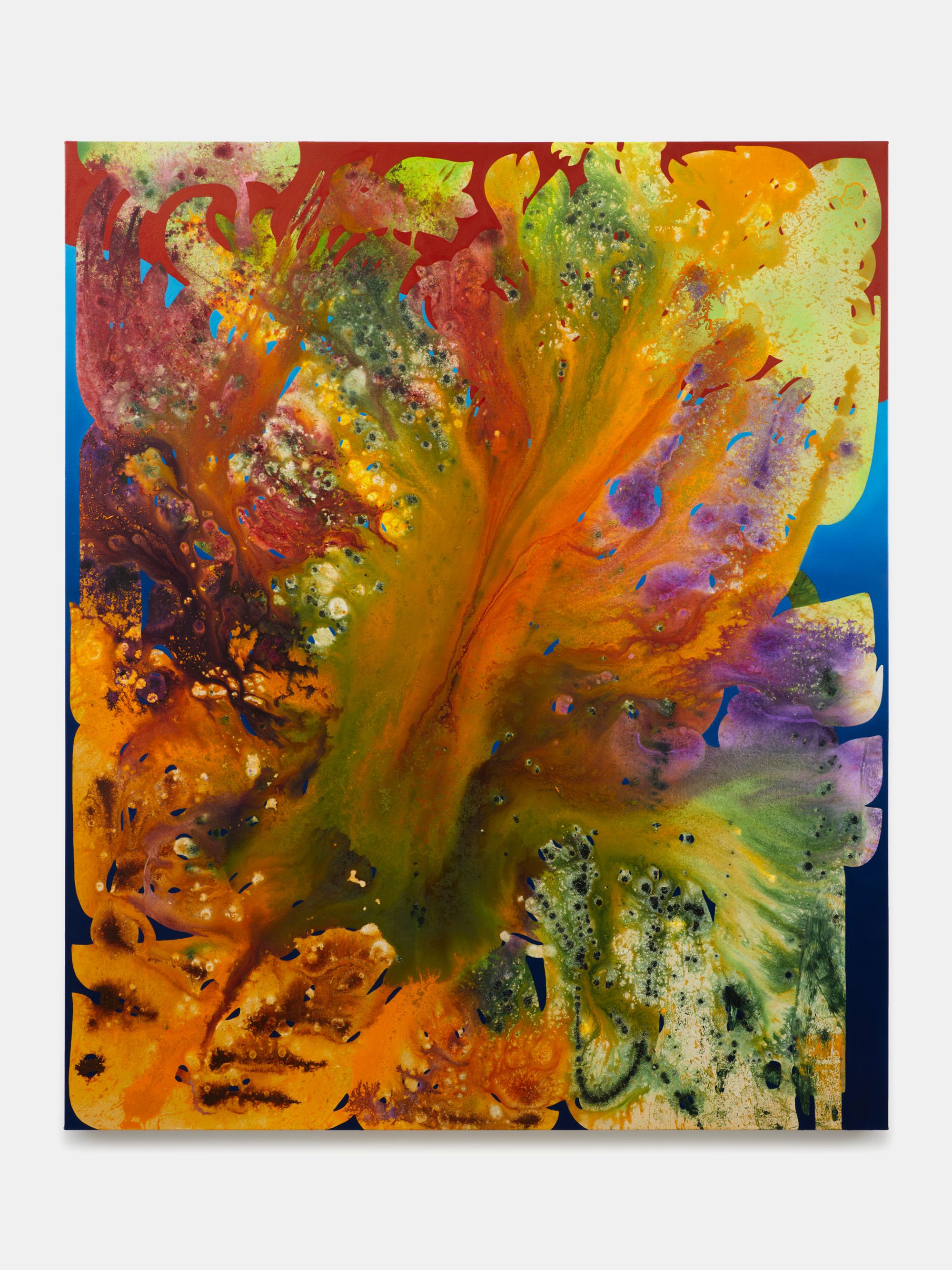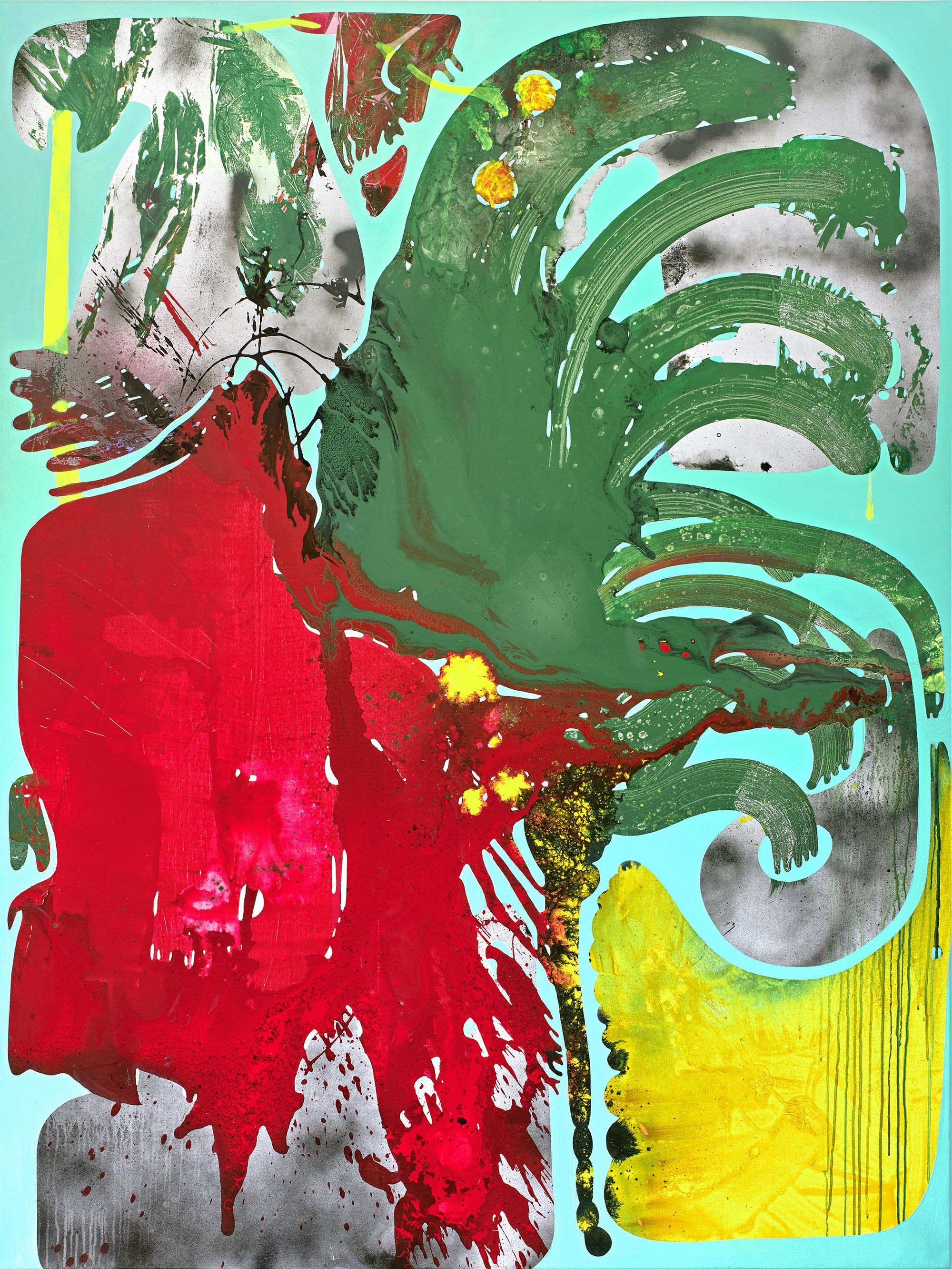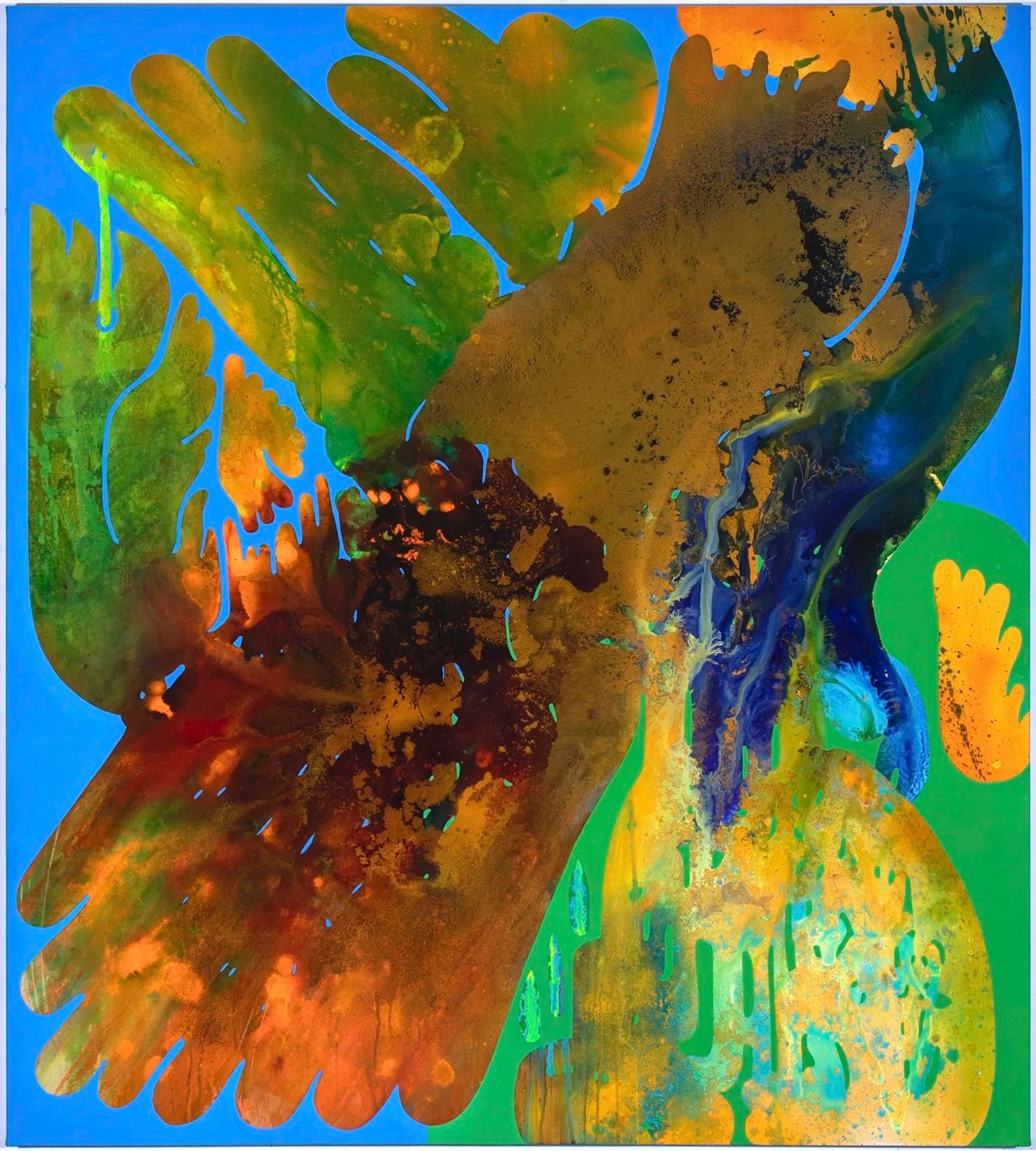 Vian Sora (b. 1976 in Baghdad, Iraq, lives and works in Louisville, Kentucky, USA) is best known for vivid, improvisational abstractions which reflect on themes of creation and regeneration. Her compositions balance disorder with control, evoking the terrain of an aerial landscape or the bloom of flora. Working from above with her canvases laid flat, Sora dissolves raw pigments into rich, aqueous color fields. By applying dozens of layers of paint, Sora achieves a tremendous range of surfaces, from dense, crystalline textures to airy, atmospheric passages. Her expressionistic grounds are overlaid with a series of crisp, monochrome shapes, rendered freehand by the artist. They resemble elements of Arabic calligraphy and cuneiform which have been fragmented into the artist's own formal, non-representational language.