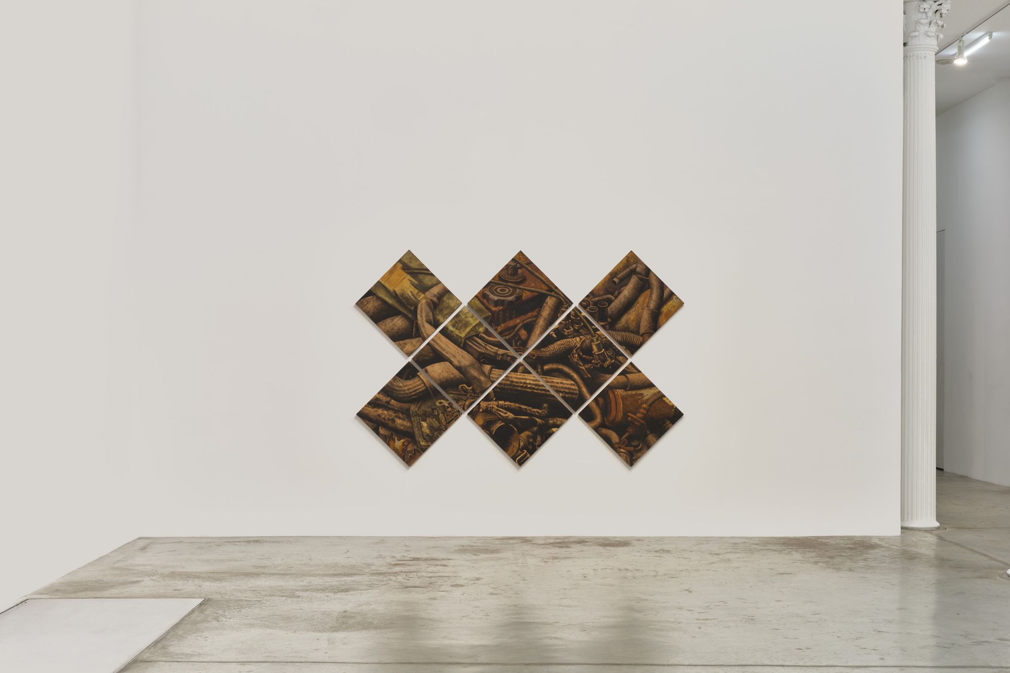 Featuring new and recent works by Diana Al-Hadid, Leonardo Meoni, Jonathan Okoronkwo, Claudio Parmiggiani, and Yunyao Zhang, the exhibition centers on two-dimensional artworks that forego painting’s traditional materials. The artists use the titular supports and mediums to expose and explore the limits of pictorial systems, while further emphasizing how context informs material choices—from industrial trade to art historical movements. Felt, velvet, soot, gypsum, and engine oil are all employed by the participating artists in order to break with convention and expand the field.