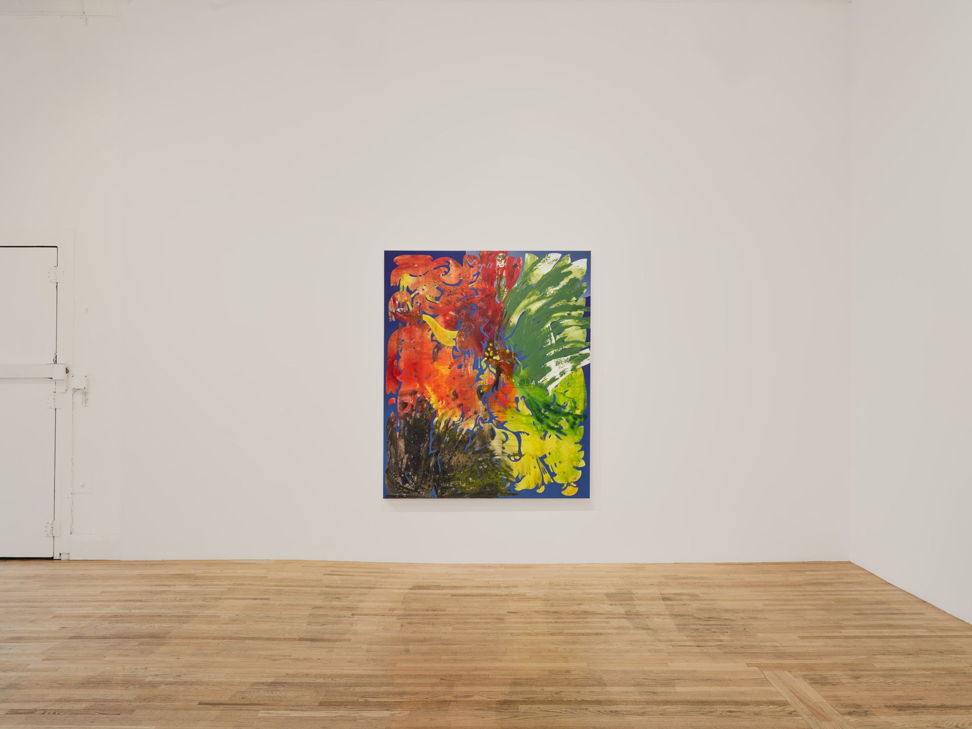 Lesley Vance (b. 1977, USA; lives in Los Angeles, California) crates compositions in which distinctions of positive and negative space are deliberately confused. Slick, sinuous bands of monochromatic color encircle multicolor grounds which have been intentionally abraded to create textures reminiscent of the natural world.