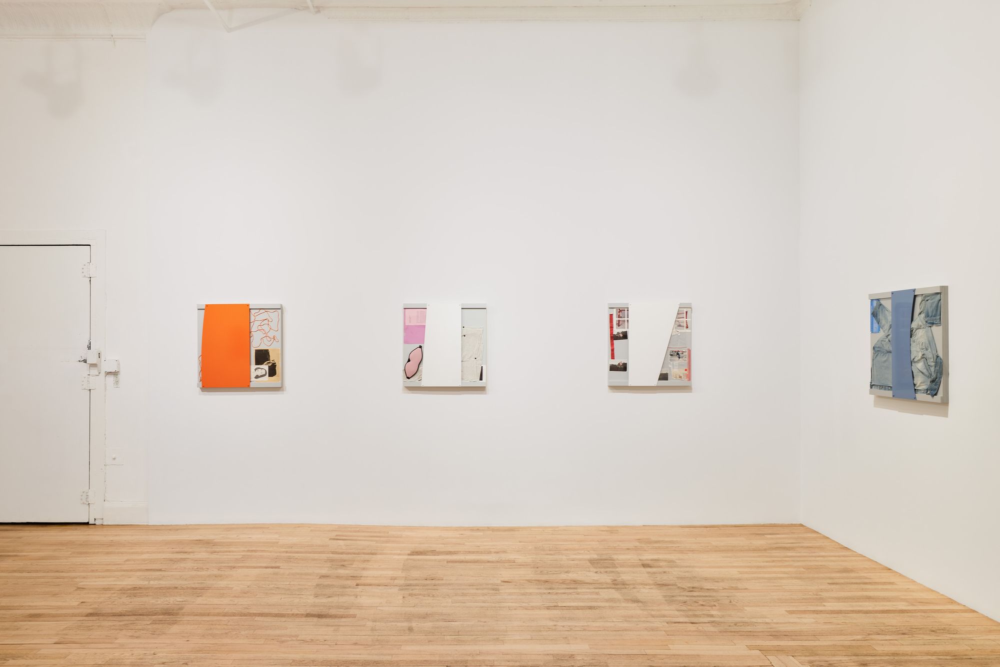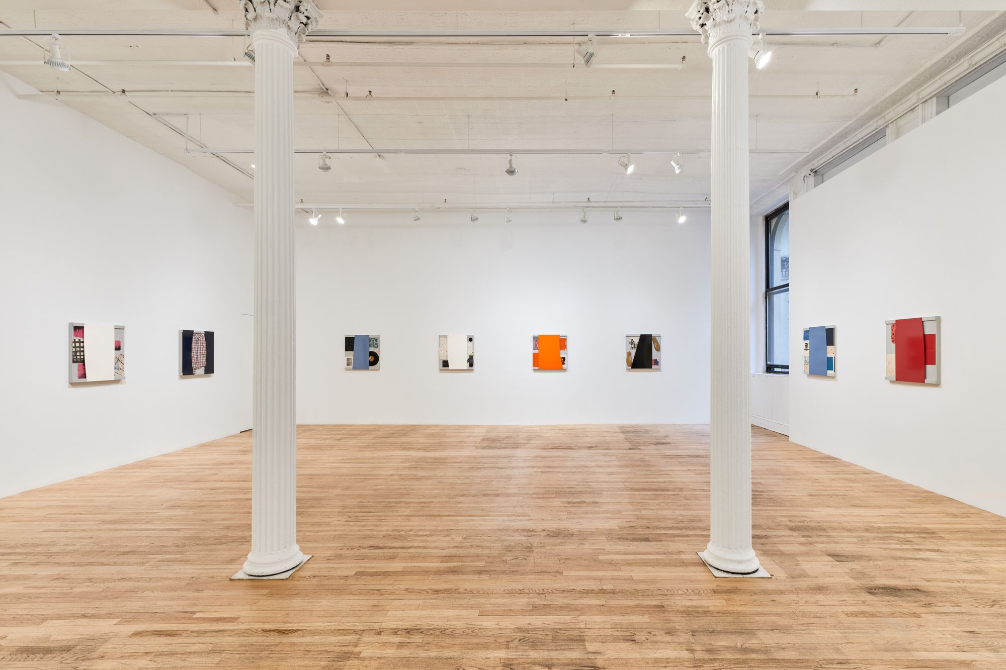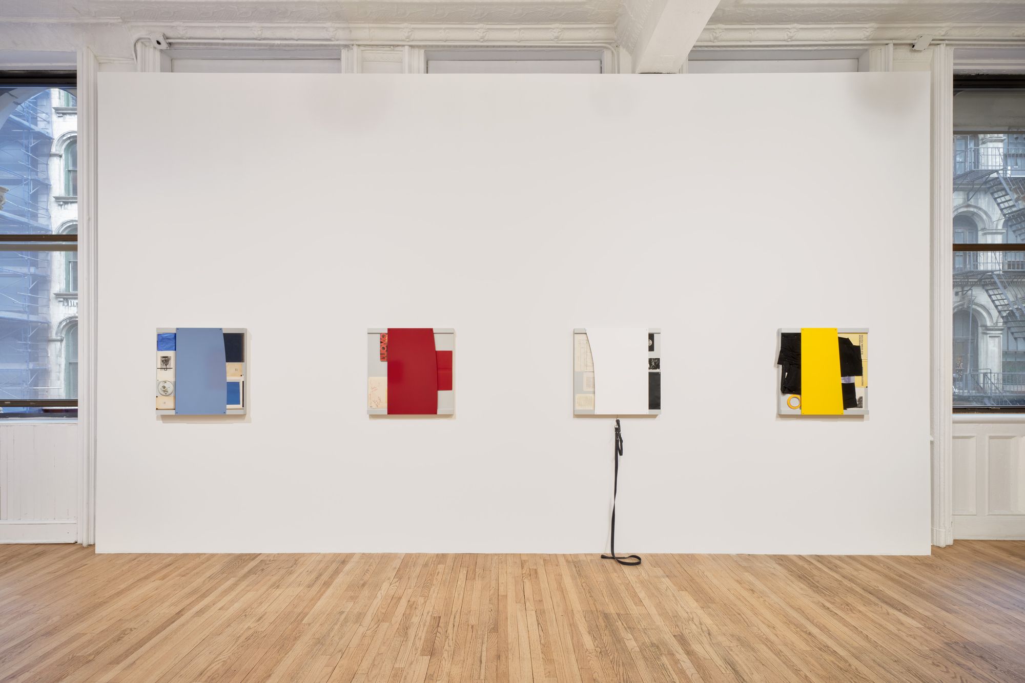 Bortolami is pleased to present Journal Works by Tom Burr, his tenth solo exhibition at the gallery and the first show dedicated to his titular series. Of the twenty-nine works in the series, approximately half are on view. Burr’s new Journal works elaborate his practice of making wood-mounted collages, also called “bulletin boards” which the artist has produced in various formats since the late 1990s. Culling materials from art history, queer cultures, and his personal life as an artist, Burr places images, texts, items of clothing, and cultural refuse in productive relation to each other. He furthers his material exploration and accumulation using colorful powder-coated aluminum panels, affixing them atop each composition. These shapes are loosely derived from Ellsworth Kelly’s 1957 Sculpture For a Large Wall.