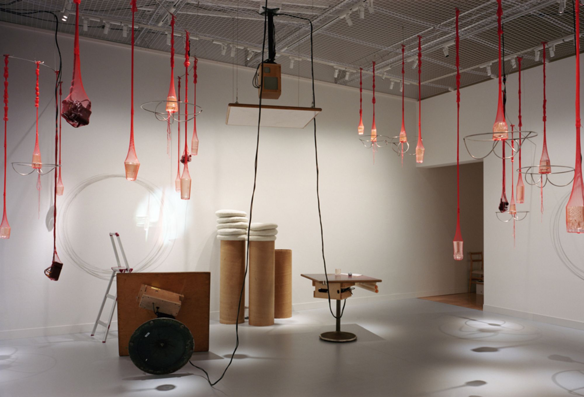 From performance and dance to installations and video, Sasamoto combines and crosses media freely as her ideas demand. She is best known for improvisational performances inside custom-built spaces incorporating sculptures and devices she prepares herself. Her early works skillfully blended everyday gestures and acts with witty narration reminiscent of the Japanese literary form known as the shishosetsu or “I novel,” examining propensities, habits, and patterns of activity to analyze the nature of the individual personality. In more recent years, she has incorporated observations of the weather and of plant and animal ecosystems into her narratives and the structure of her work. More than mere tools for accentuating these narratives, her elaborately crafted sculptures become scores prompting unexpected turns in her improvisational performances.