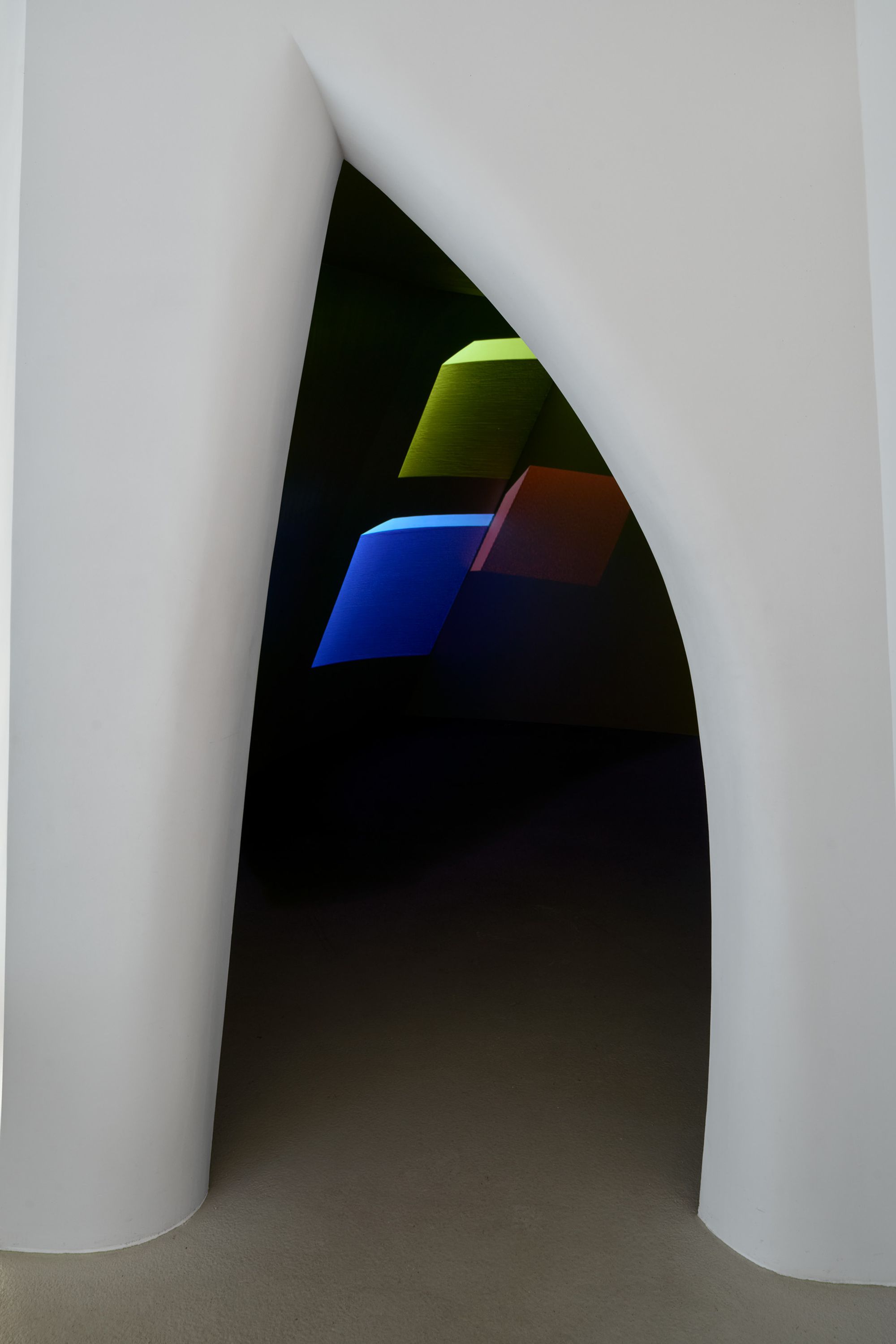 Structure, Light, Land features Kasten’s work from multiple series, including Architectural Sites, Collisions, and Progressions, as well as new iterations of digital projections, cyanotypes, and sculptures. With a striking interplay of light, color and form, Kasten’s work infiltrates the grounds of The Glass House and responds to the site’s varied built environment and landscape.